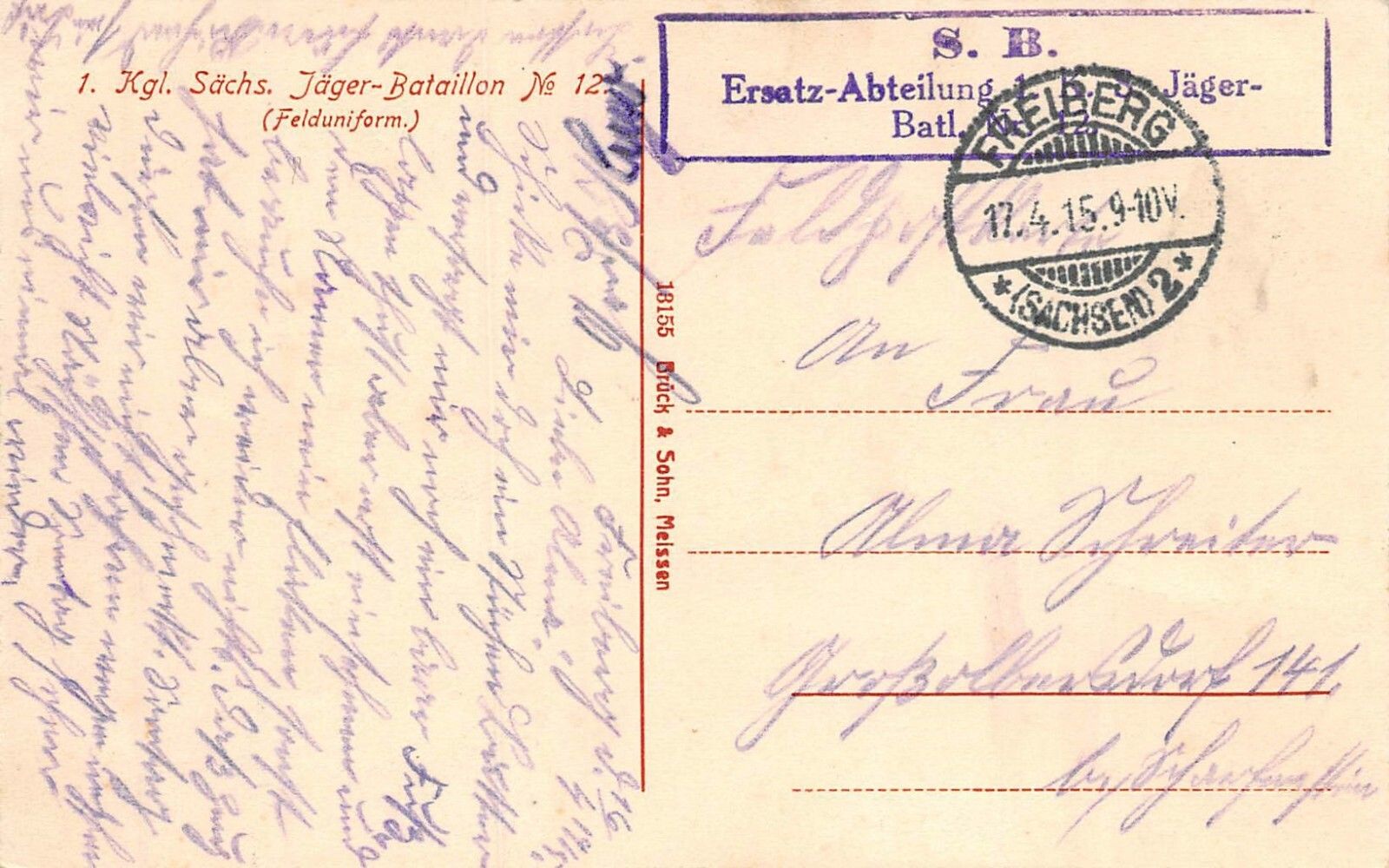 1 Kgl. Sächs. Jäger-Bataillon No.12 in Feuerstellung Freiberg Patriotika AK 1915