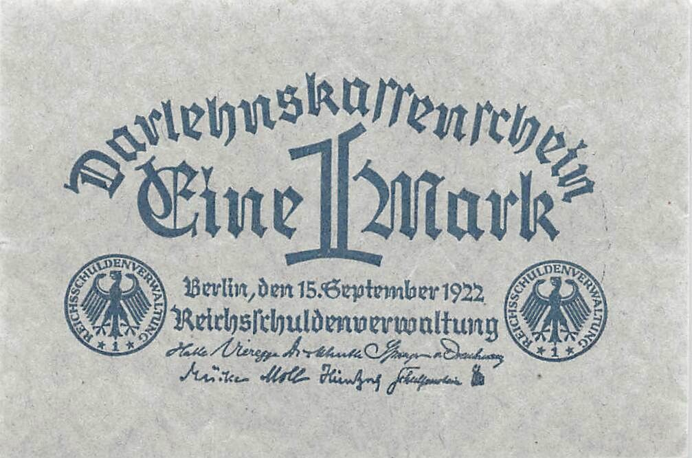 Original 1 Mark Darlehnskassenschein 15.9.1922 DEU-193 Kassenfrisch/UNC