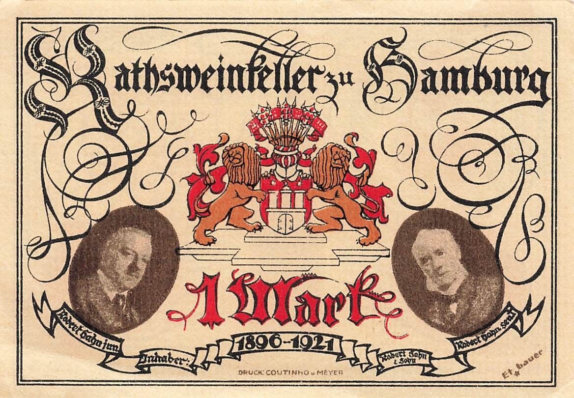 Original 1 Mark Notgeld HAMBURG Ratsweinkeller Robert Hahn Zustand: gute Erhaltung