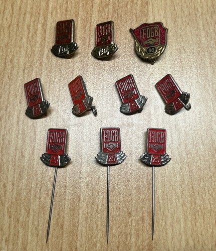 10 Abzeichen DDR: Ehrennadel FDGB 60/ 40 / 25 Jahre Mitgliedschaft Gewerkschaft.
