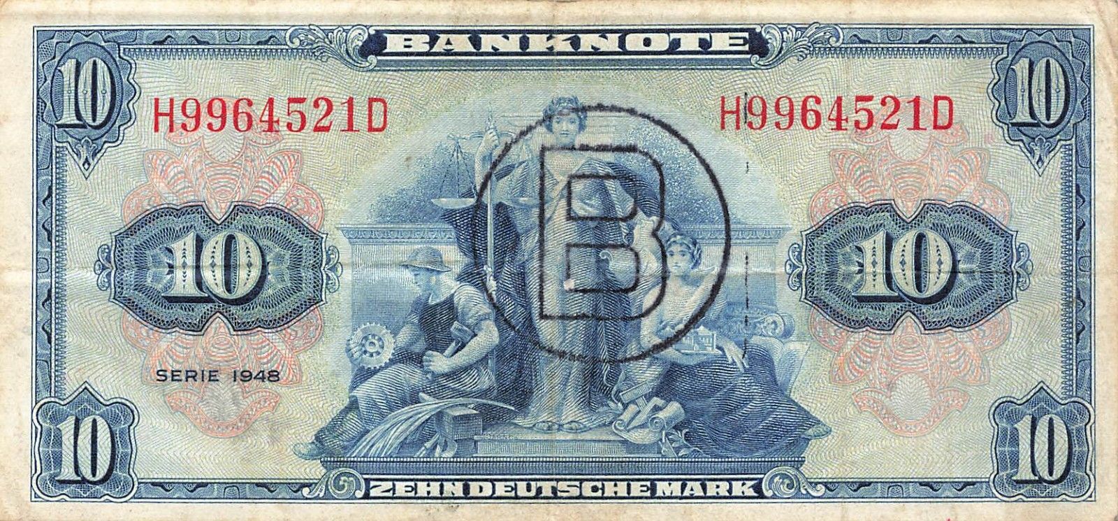 Original 10 Mark 1948, B- Stempel, Ausgabe West Berlin, Ro. 239a Zustand: Gebraucht Echtheit wird garantiert.