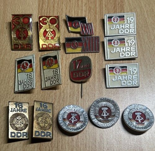 DDR 15 - 30 Jahre Abzeichen Orden Konvolut. 3x 15 Jahre 2x 16 Jahre 1x 17 Jahre 2x 18 Jahre 3x 19 Jahre 2x 20 Jahre 1x 22 Jahre 2x 23 Jahre 1x 24 Jahre 2x 30 Jahre