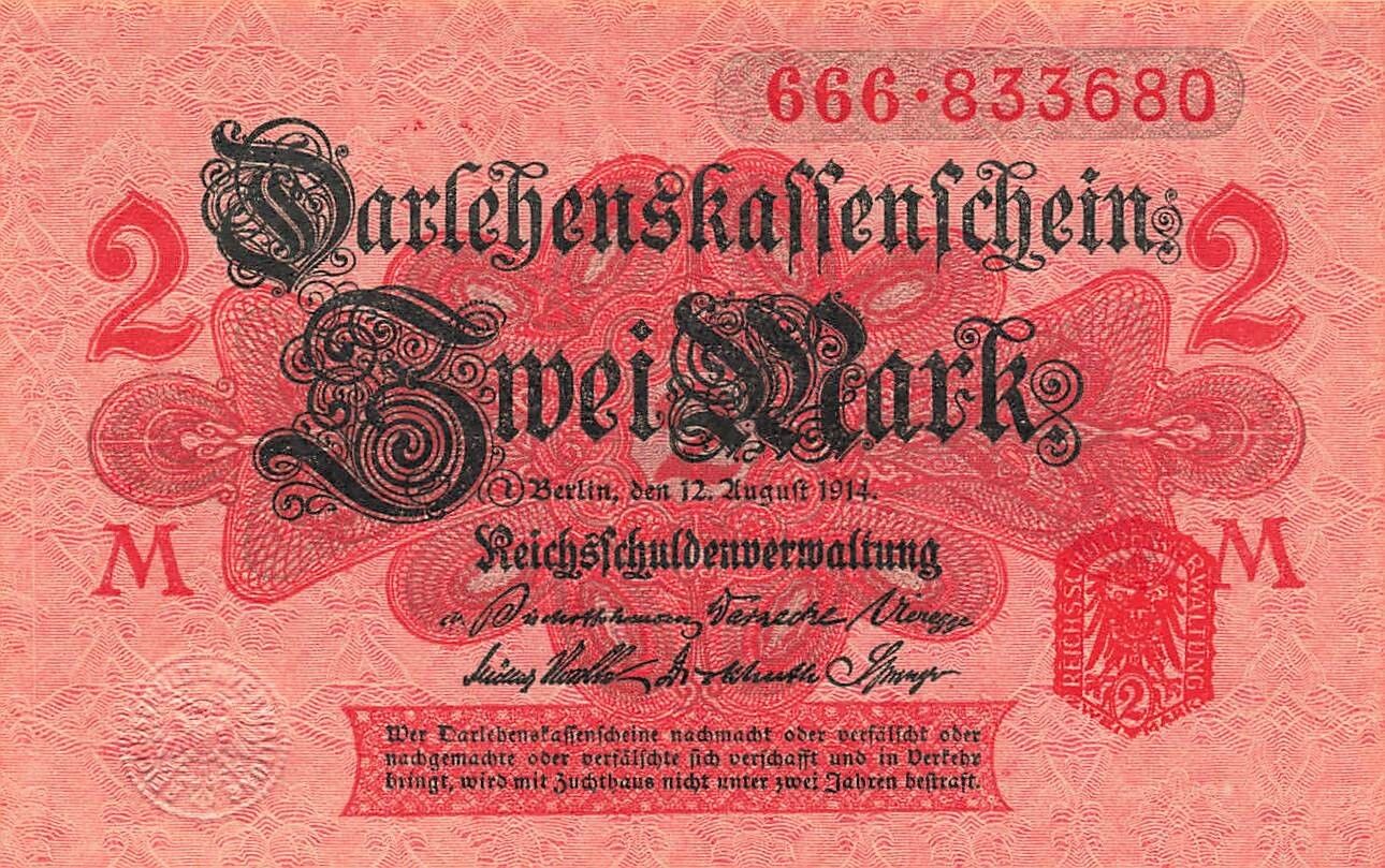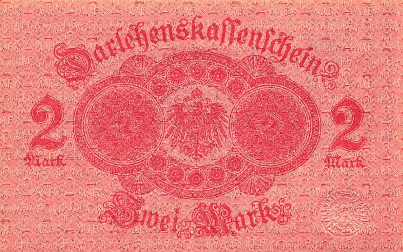 Original 2 Mark Darlehnskassenschein 12.8.1914 DEU-60 Siegel rot Kassenfrisch/UNC Zustand: UNC