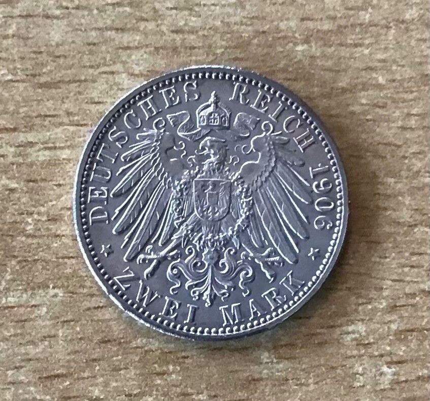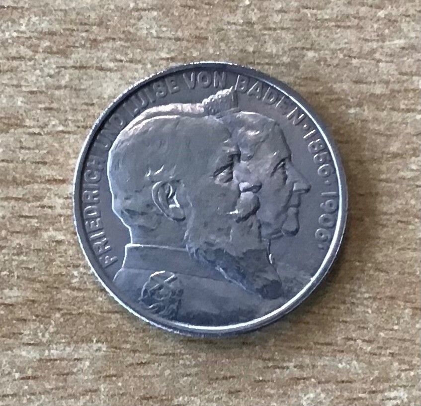 2 Mark Friedrich I Hochzeit 1906 ohne G Silbermünze Material: 900 Silber Gewicht: 11,11 g Durchmesser: 28 mm Zustand siehe Originalbilder Echtheit wird garantiert