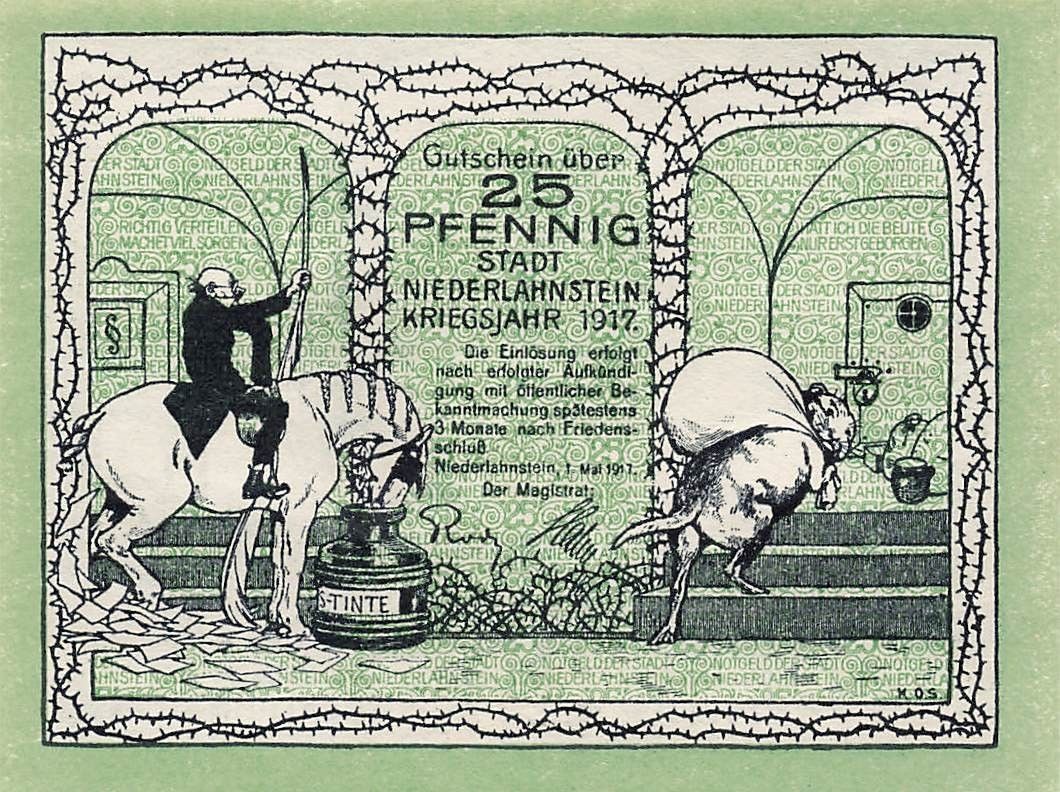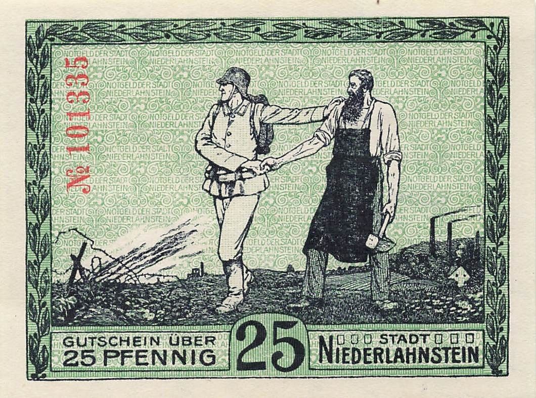 Original 25 Pfennig x Notgeld NIEDERLAHNSTEIN Stadt Zustand: gute Erhaltung Echtheit wird garantiert.