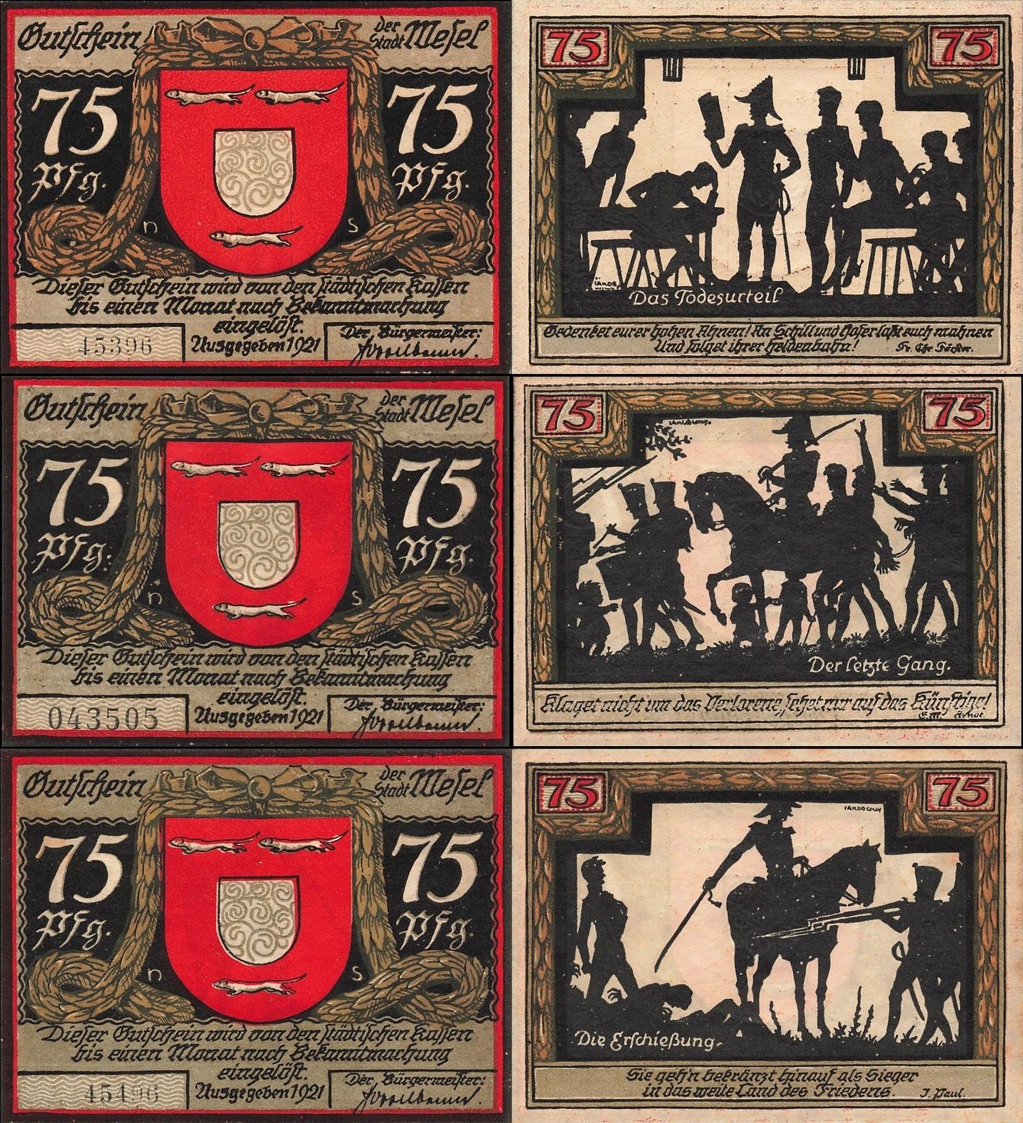 Original 3 x Notgeld WESEL Stadt Schattenbilder Zustand: gute Erhaltung Echtheit wird garantiert.