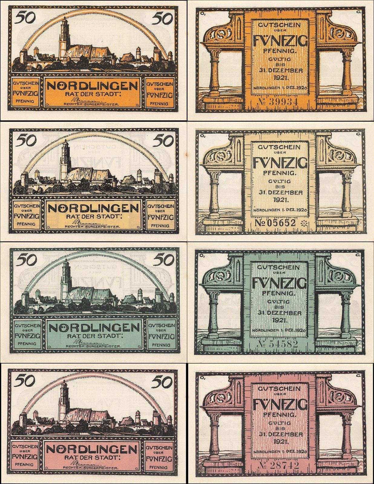 Original 4x 50 Pfennig Notgeld NÖRDLINGEN Stadt ohne Gedicht Zustand: gute Erhaltung Echtheit wird garantiert.