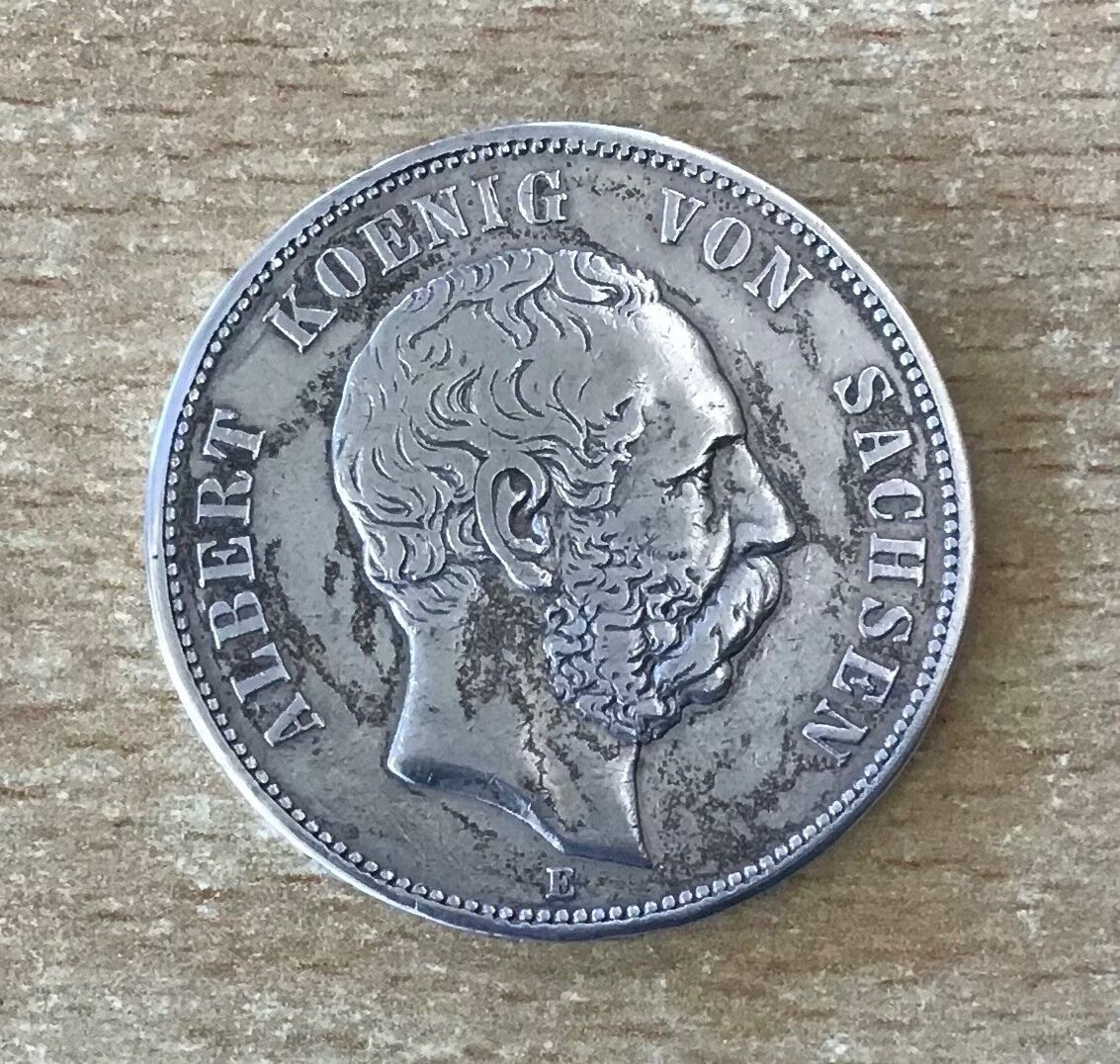 5 Mark Albert König von Sachsen 1876 E Kaiserreich Silber Material: 900 Silber Gewicht: 27,77 g Durchmesser: 38 mm Zustand siehe Originalbilder Echtheit wird garantiert