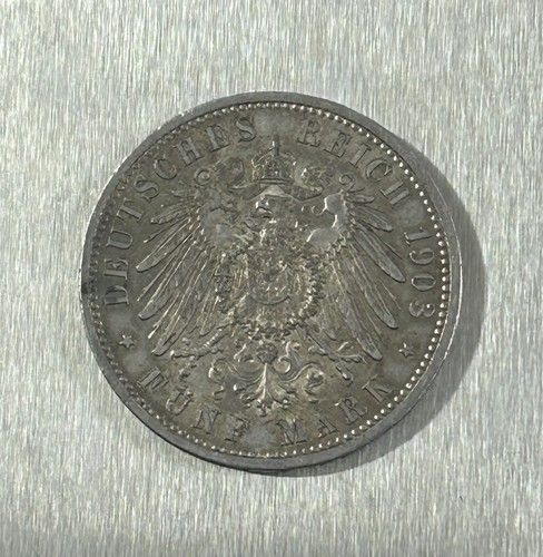Original 5 Mark Friedrich Grosherzog von Baden 1903 G Silbermünze Kaiserreich Material: 900 Silber Zustand siehe Originalbilder Echtheit wird garantiert.