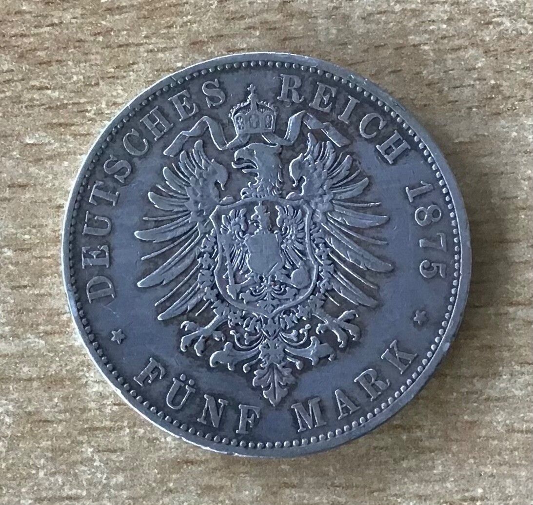 5 Mark Ludwig II 1875 D Kaiserreich Silber Material: 900 Silber Gewicht: 27,78g Durchmesser: 38 mm Zustand siehe Originalbilder Echtheit wird garantiert