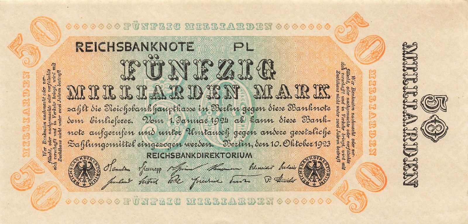 Original 50 Milliarden Mark 10.10.1923 Reichsbanknote Banknote DEU-140c