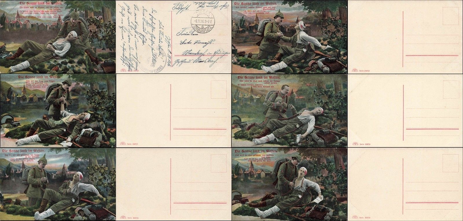 6 x AK Patriotika Militär 1.WK Postkarten Die Sonne sank im Westen.