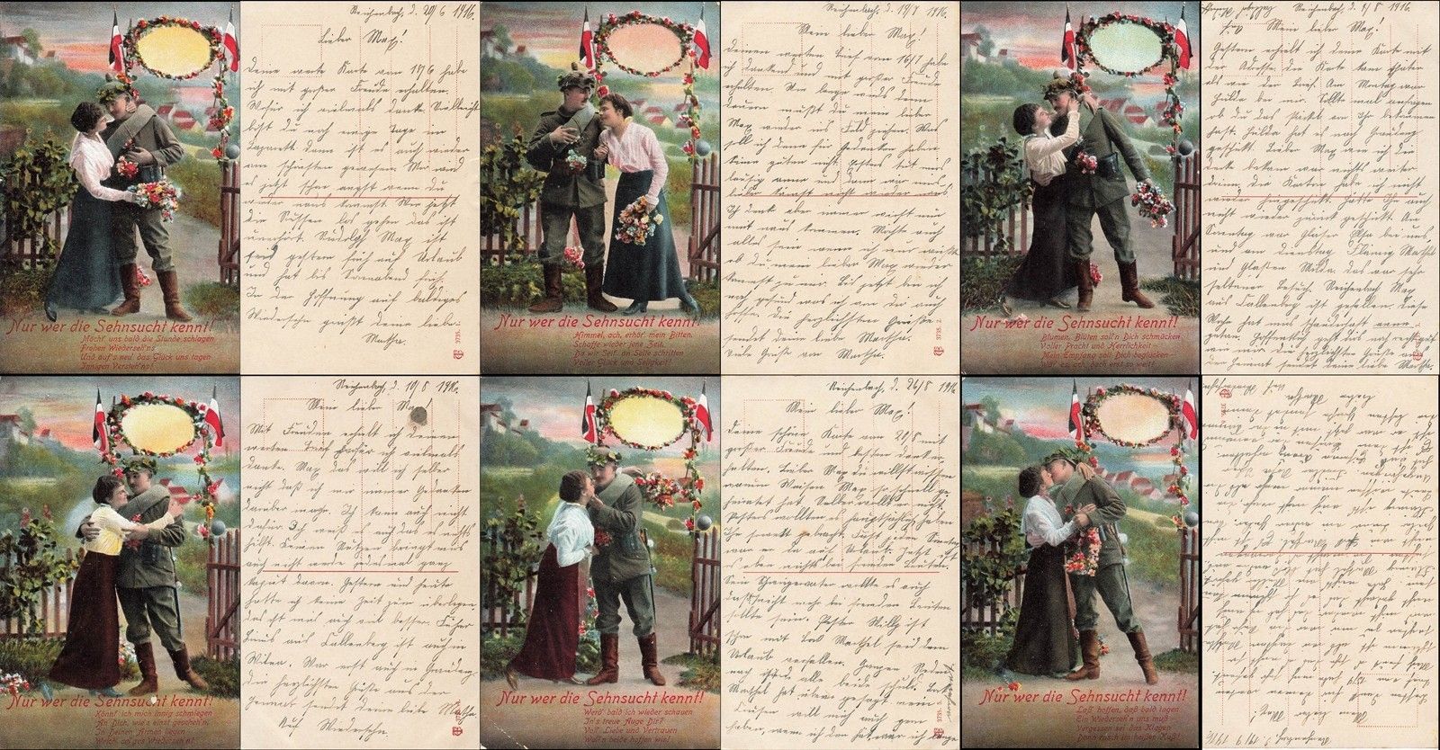 6 x AK Patriotika Militär 1.WK Postkarten Nur wer die Sehnsucht kennt !