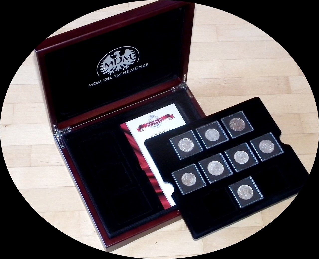 Original 8 Silbermünzen mit Etui und Zertifikaten