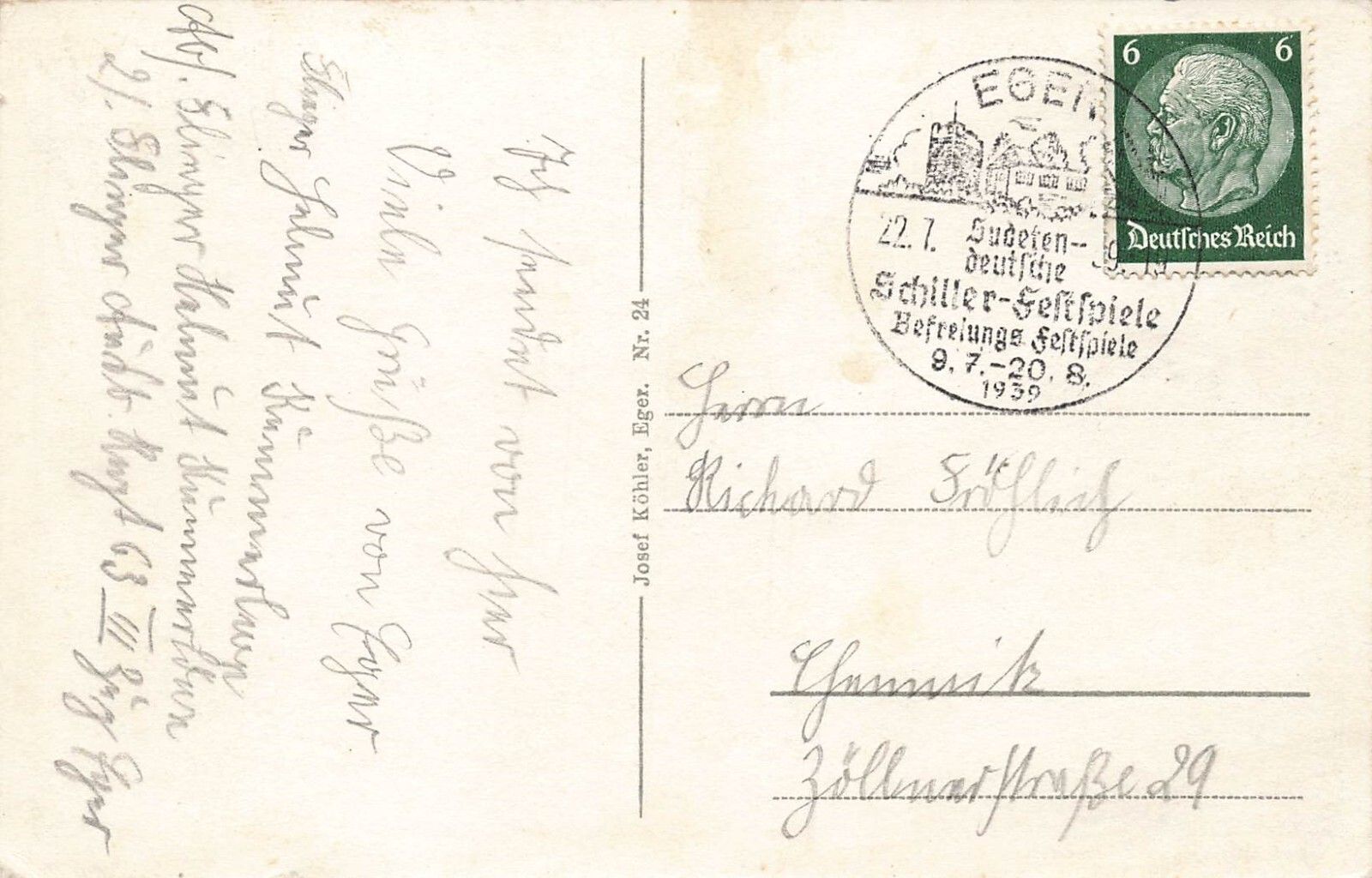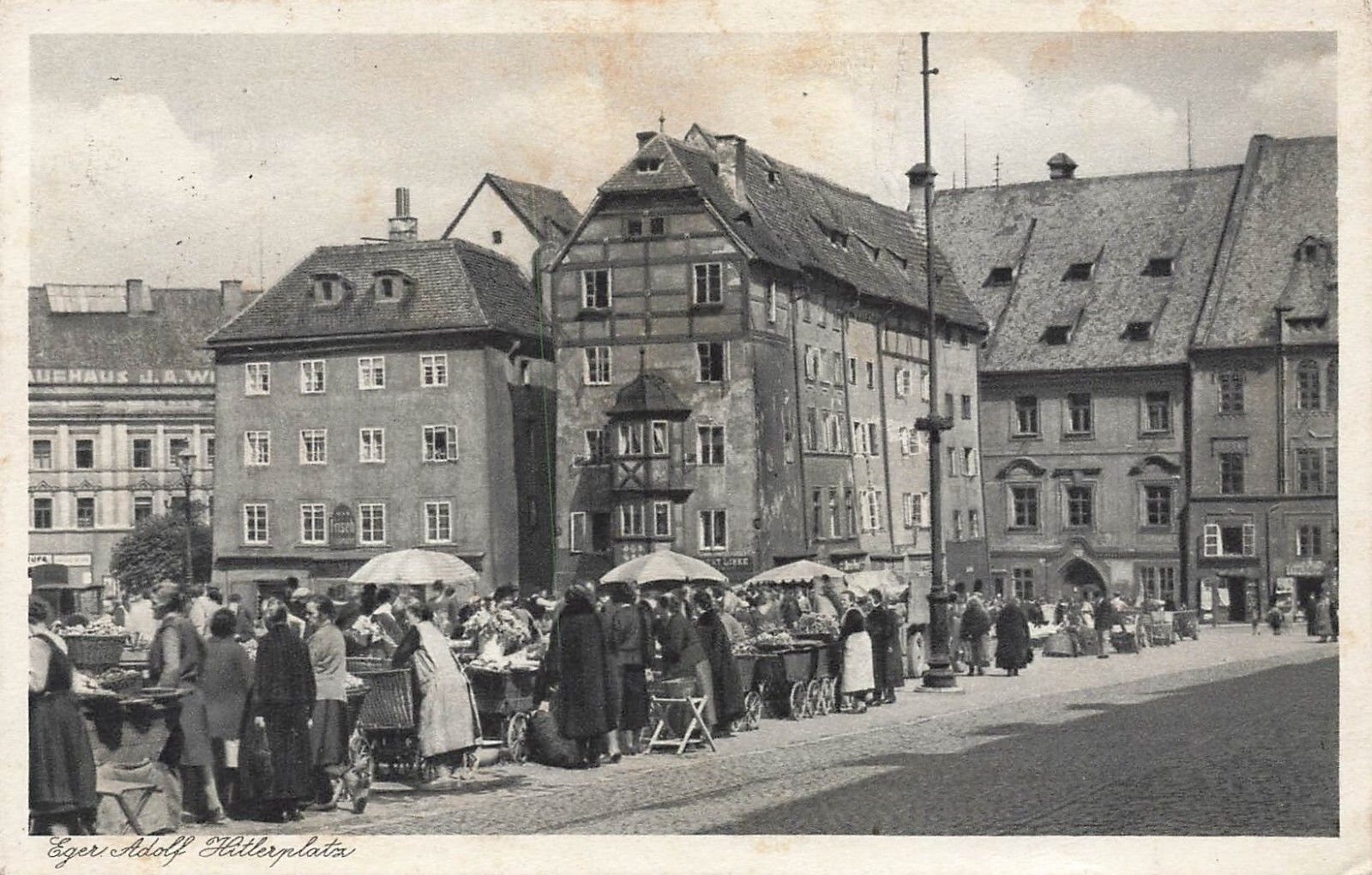 Adolf Hitlerplatz in Eger Cheb Sudetenland Postkarte AK 1939