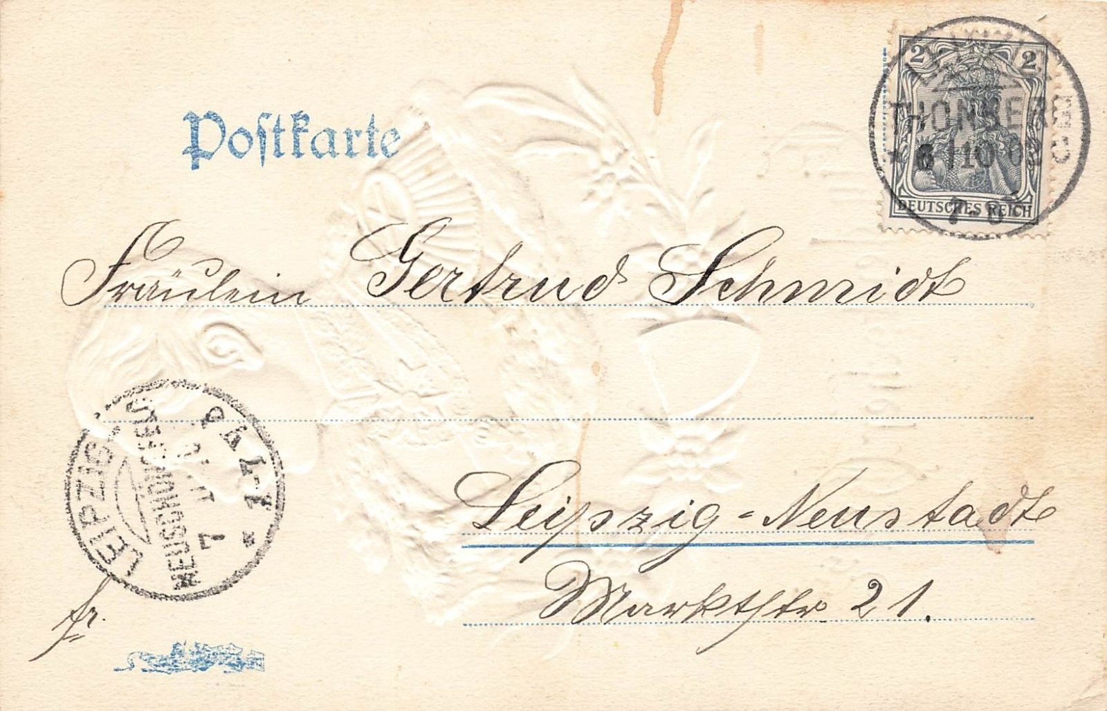 AK 1.WK Kaiser Wilhelm II Portrait 1902 gelaufen Patriotika Postkarte Geprägt