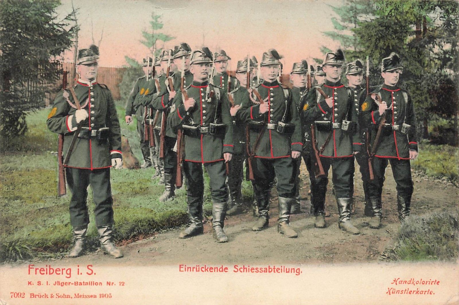 Sächsische Jäger Nr. 12 / Einrückende Schiessabteilung / Freiberg