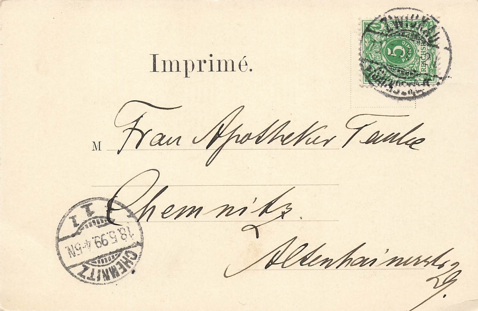 Rückseite: gelaufen 1899