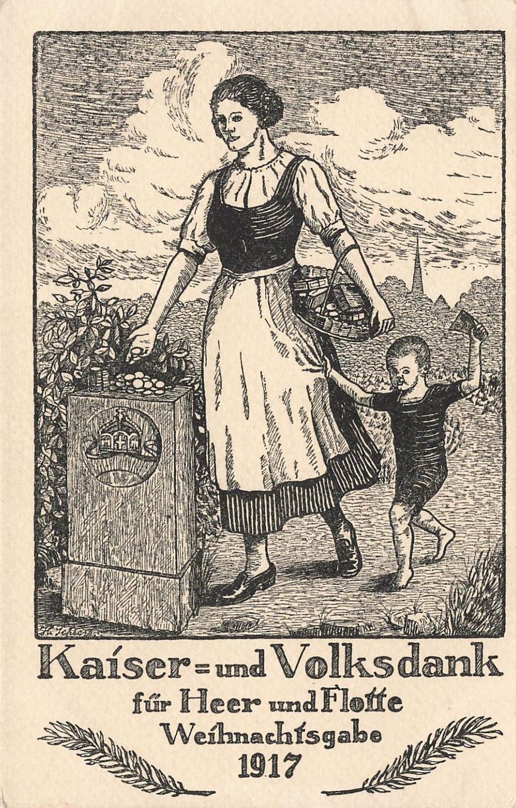Weihnachtsgabe 1917 / Kaiser und Volksdank / Frau / Kind