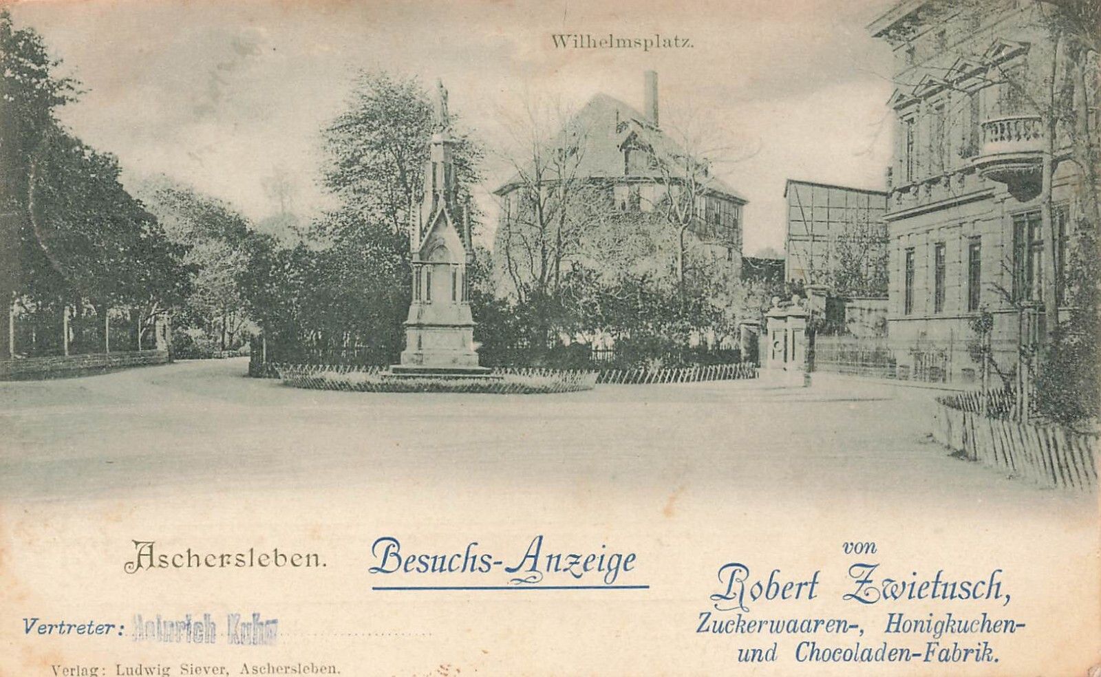 AK Aschersleben Wilhelmsplatz Denkmal Sachsen-Anhalt 1900 gelaufen Postkarte