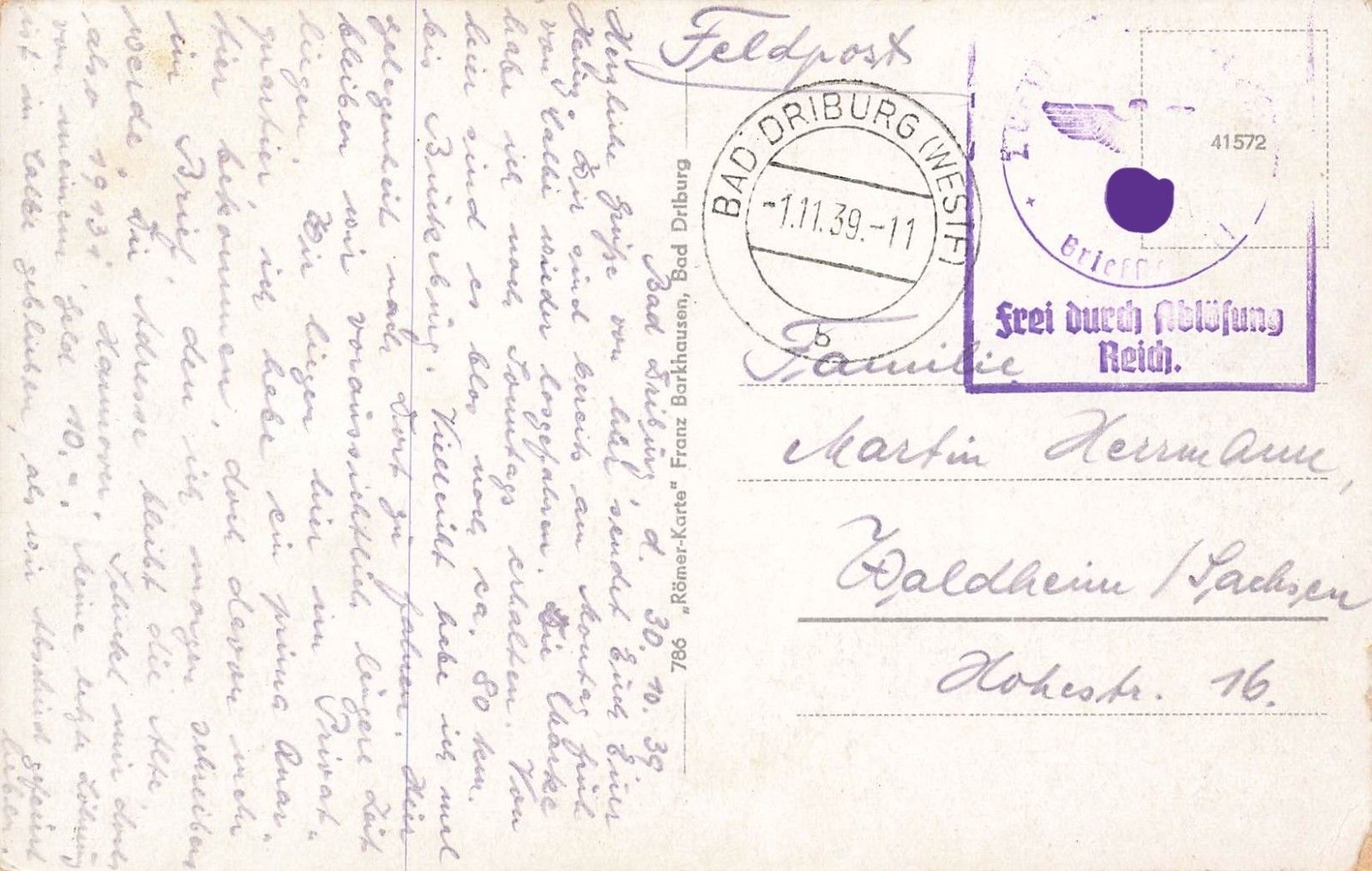 Rückseite: gelaufen 1939