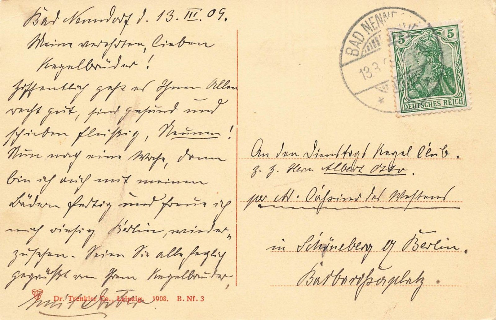 Rückseite: gelaufen 1909
