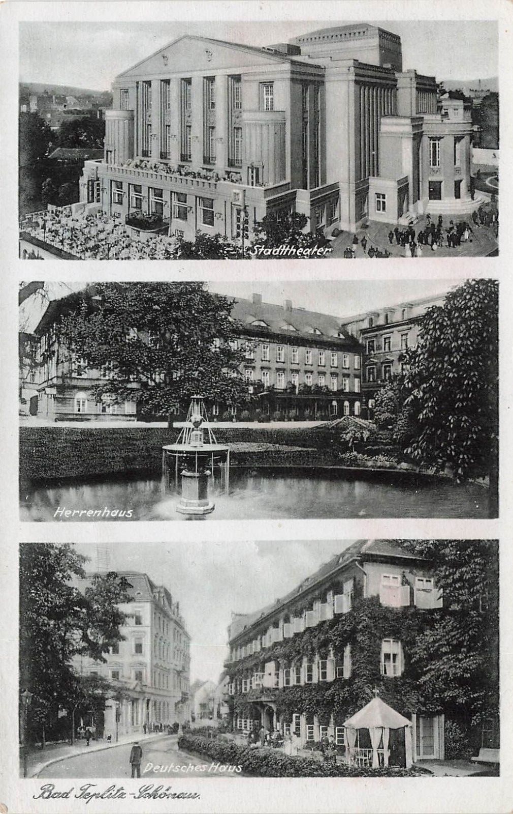 AK Bad Teplitz-Schönau Stadttheater Herrenhaus Deutsches Haus Sudeten Postkarte
