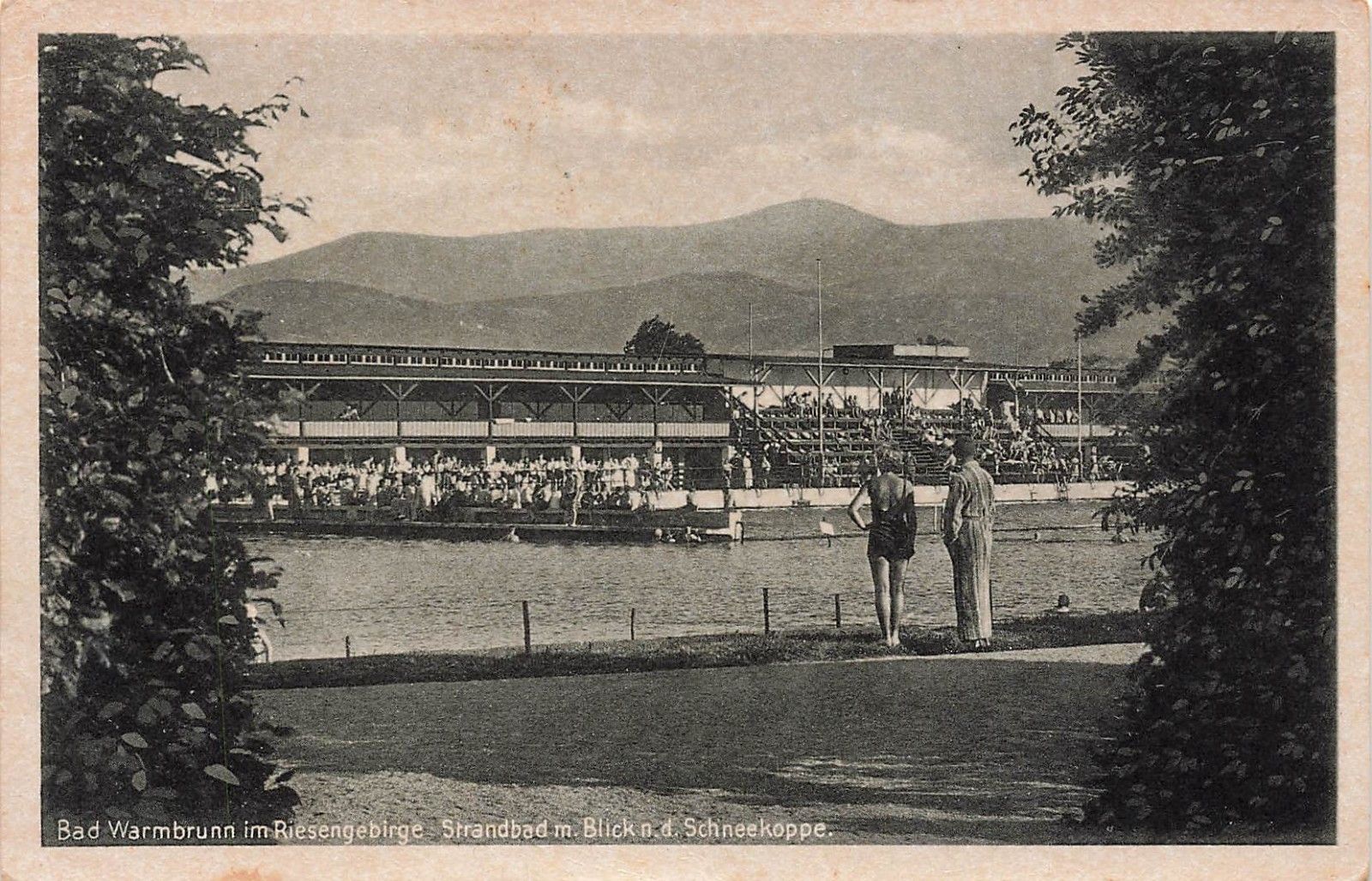 AK Bad Warmbrunnen Strandbad Schneekoppe Schlesien ungelaufen Postkarte