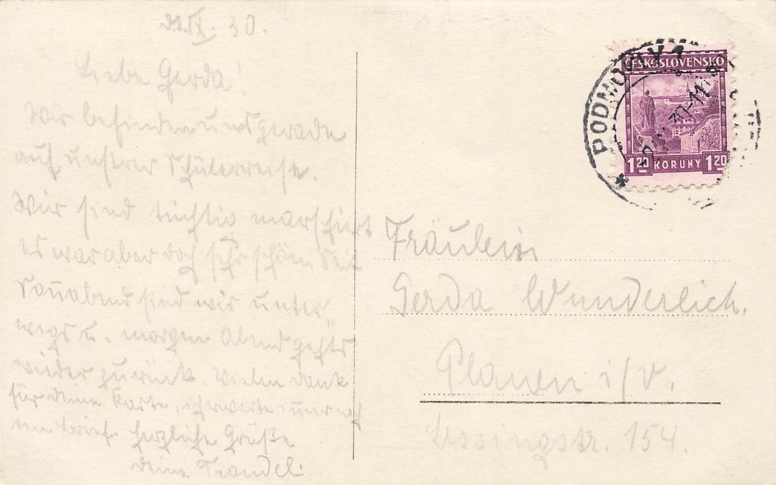 Rückseite: gelaufen 1930