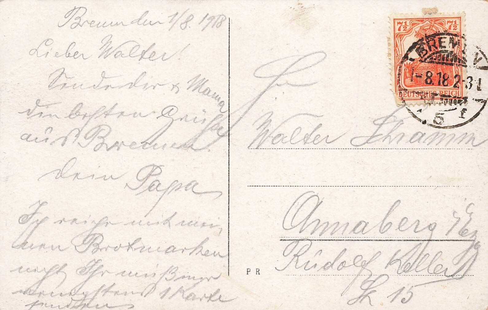 Rückseite: gelaufen 1918