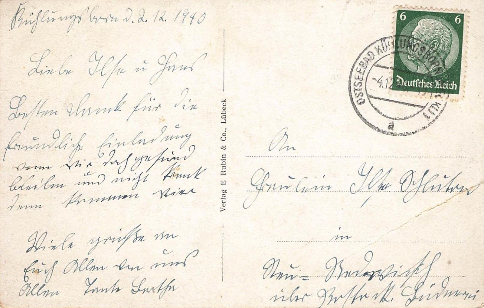 Rückseite: gelaufen 1940