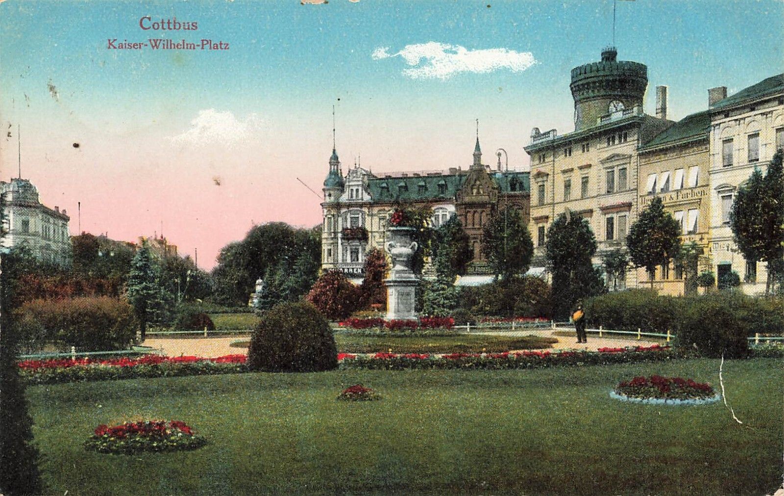 AK Cottbus Kaiser-Wilhelm-Platz Brandenburg 1918 gelaufen Postkarte