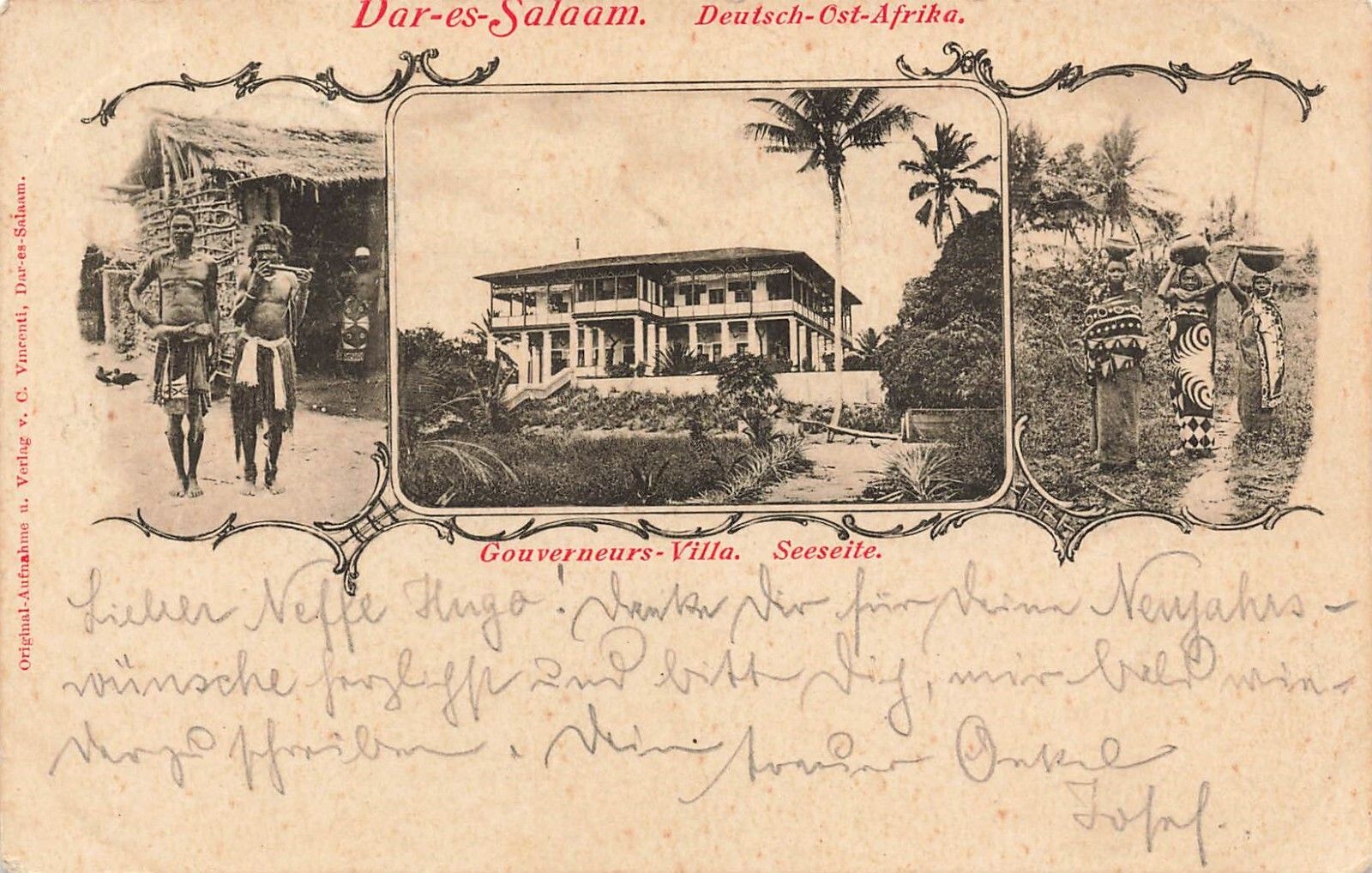 Original Postkarte Maße 9 x 14 cm AK Deutsch-Ostafrika DOA Gouverneurs-Villa gelaufen Dar-es-Salaam 1900 Zustand: gebraucht