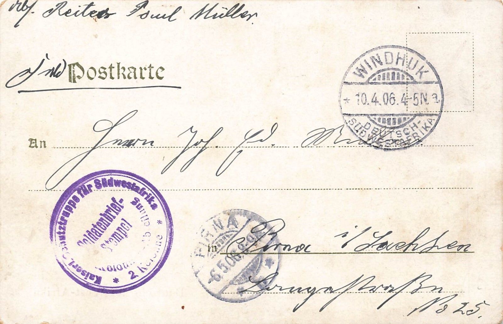 AK Deutsch-Südwest-Afrika DSWA Avis gel. Feldpost Schutztruppe WINDHUK 1906