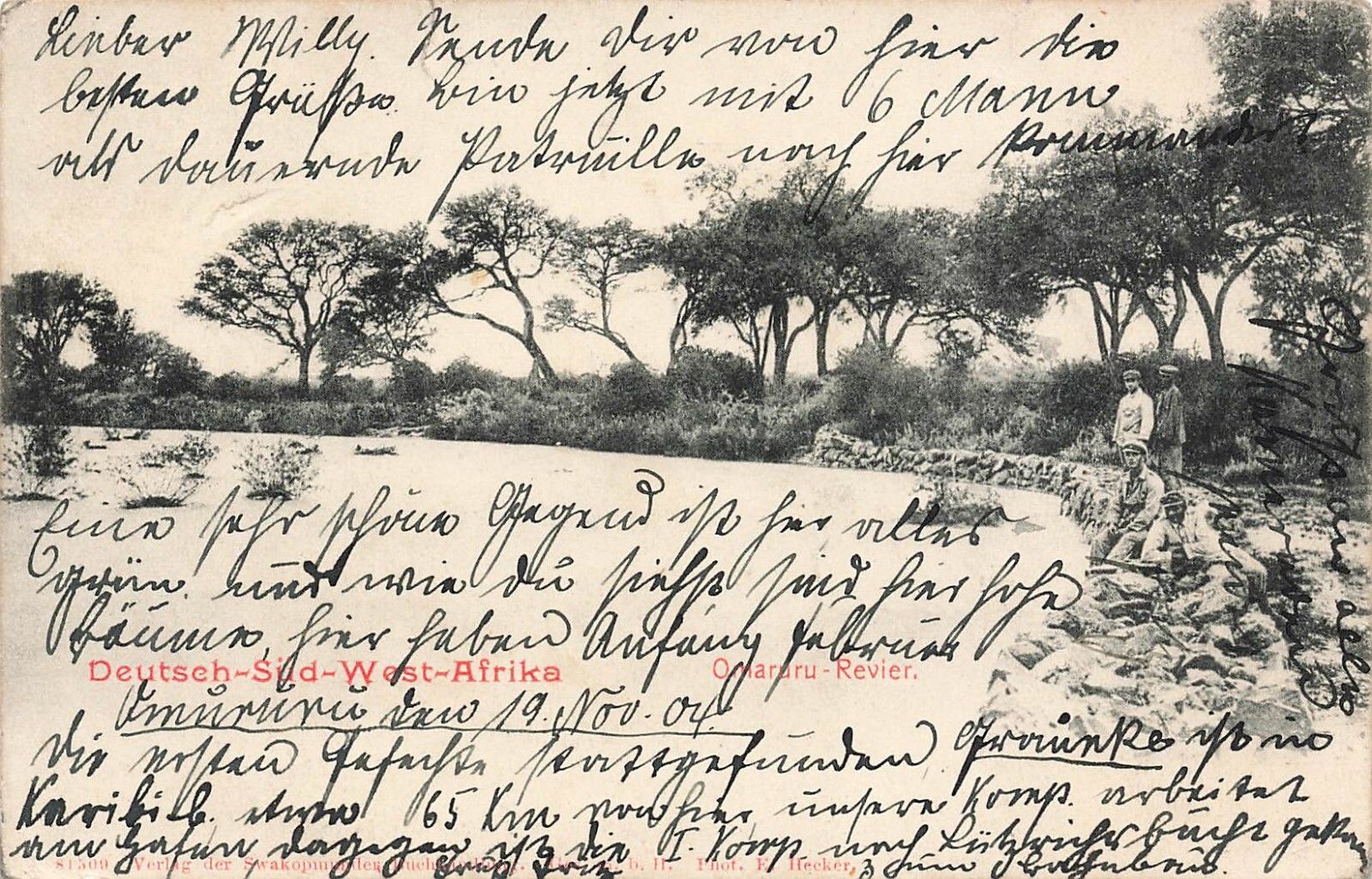 Original Postkarte Maße 14 x 9 cm AK Deutsch-Südwest-Afrika DSWA Omaruru River Karibib 1904 Zustand: gebraucht