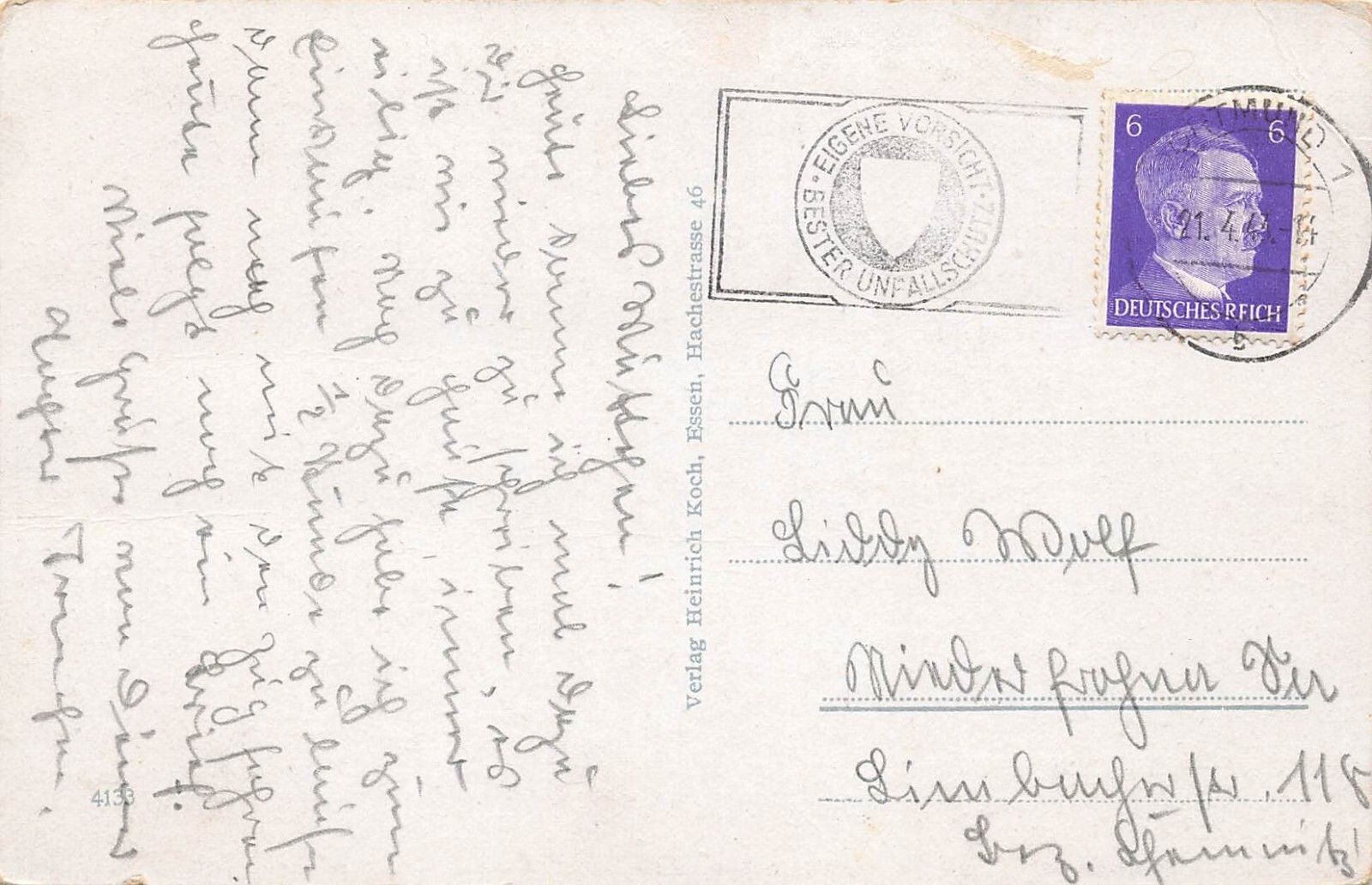 Rückseite: gelaufen 1943