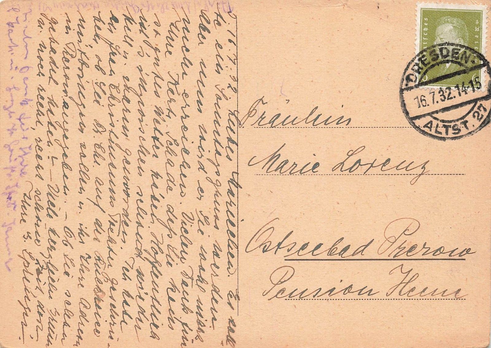 Rückseite: gelaufen 1932