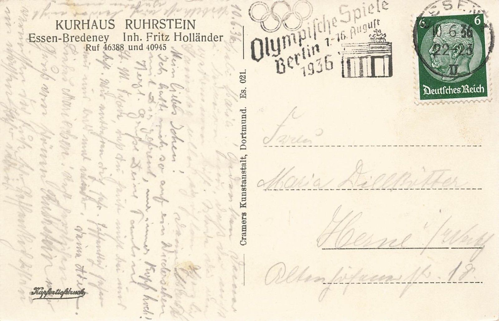 AK Essen Kurhaus Ruhrstein Nordrhein-Westfalen 1936 gelaufen Postkarte