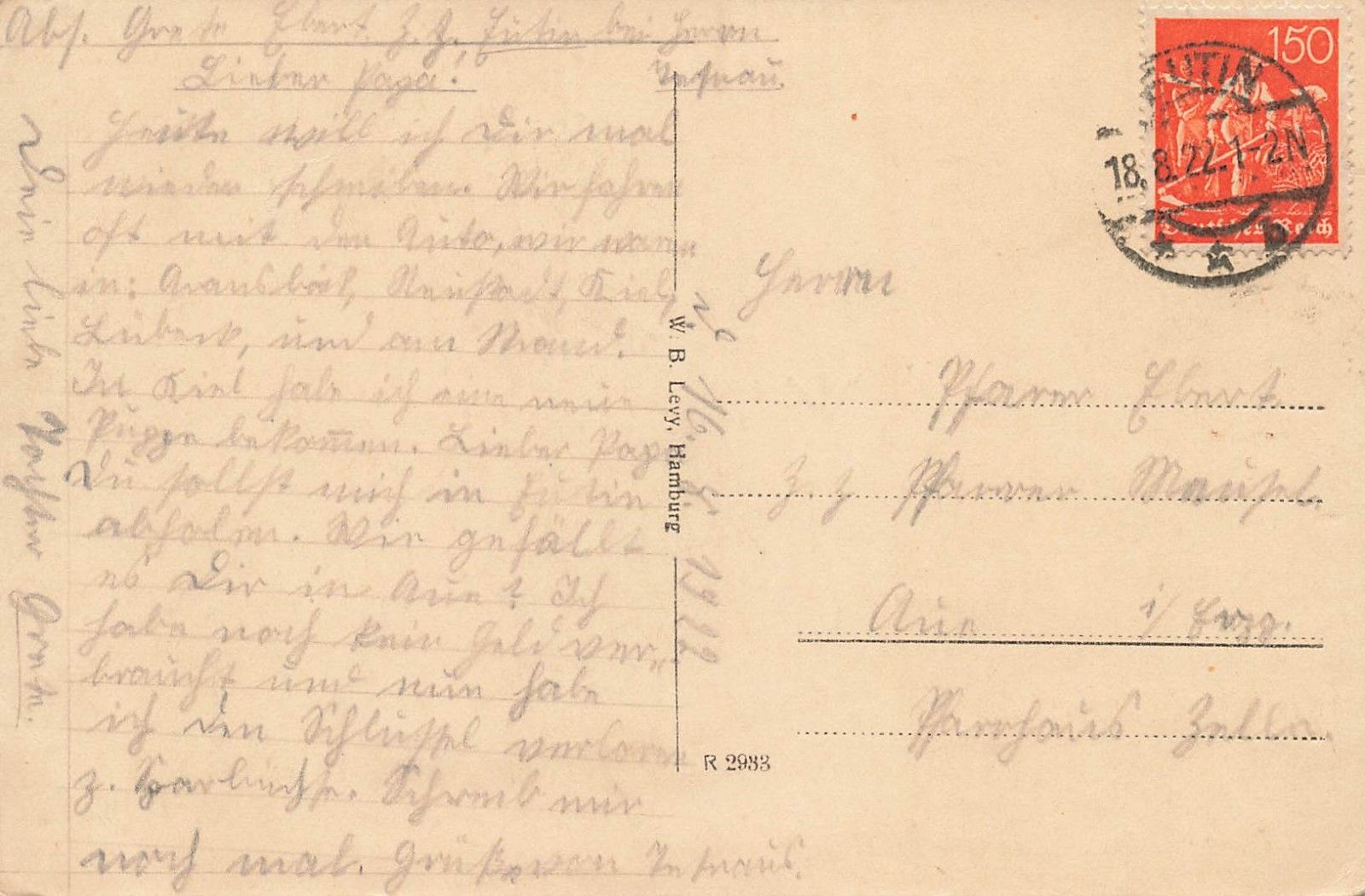 Rückseite: gelaufen 1922