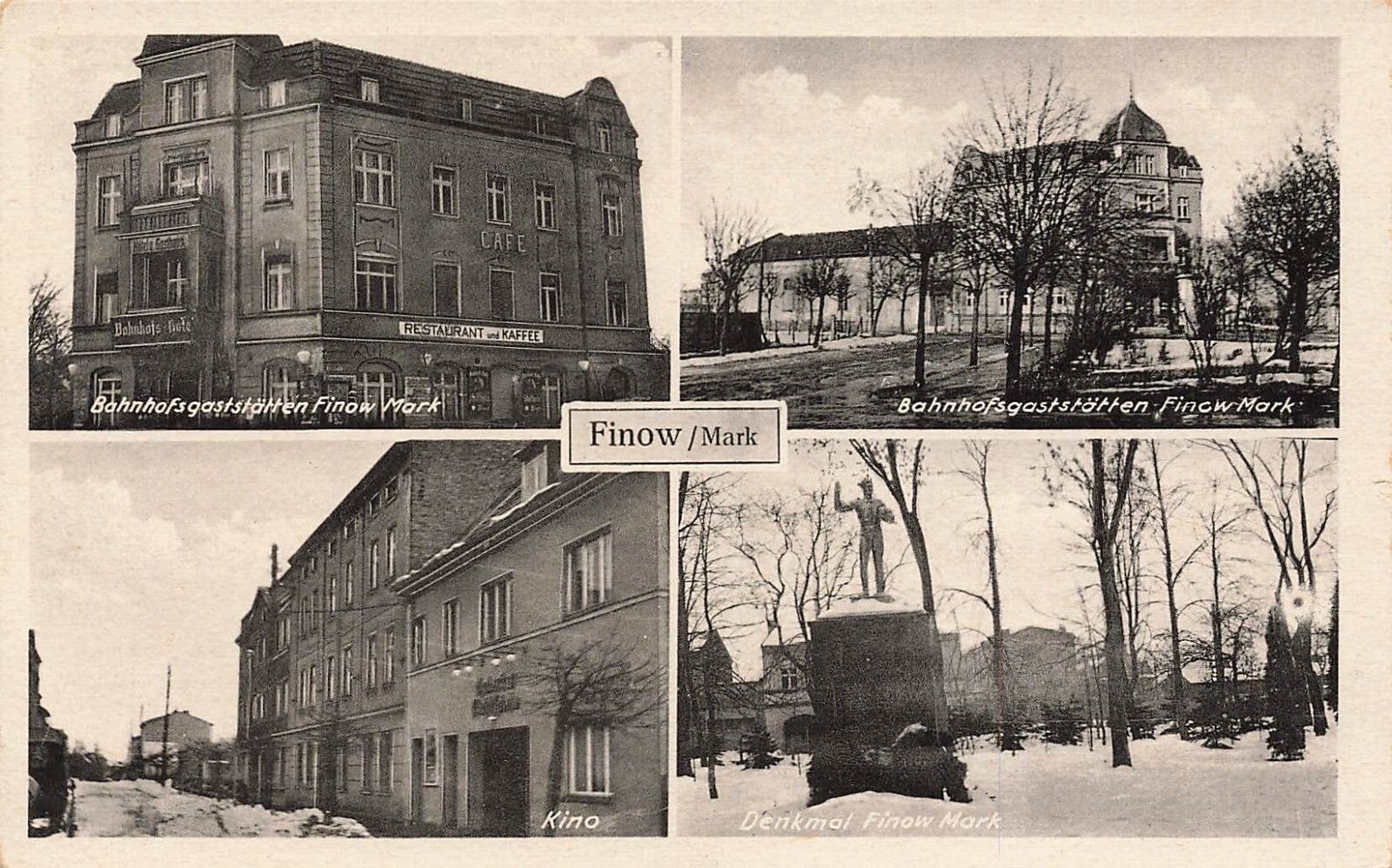 AK Finow Mark Bahnhofsgaststätten Kino Denkmal Brandenburg ungelaufen Postkarte
