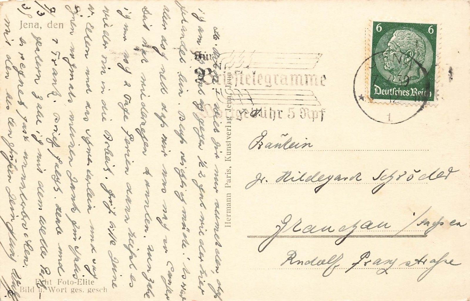 Rückseite: gelaufen 1939