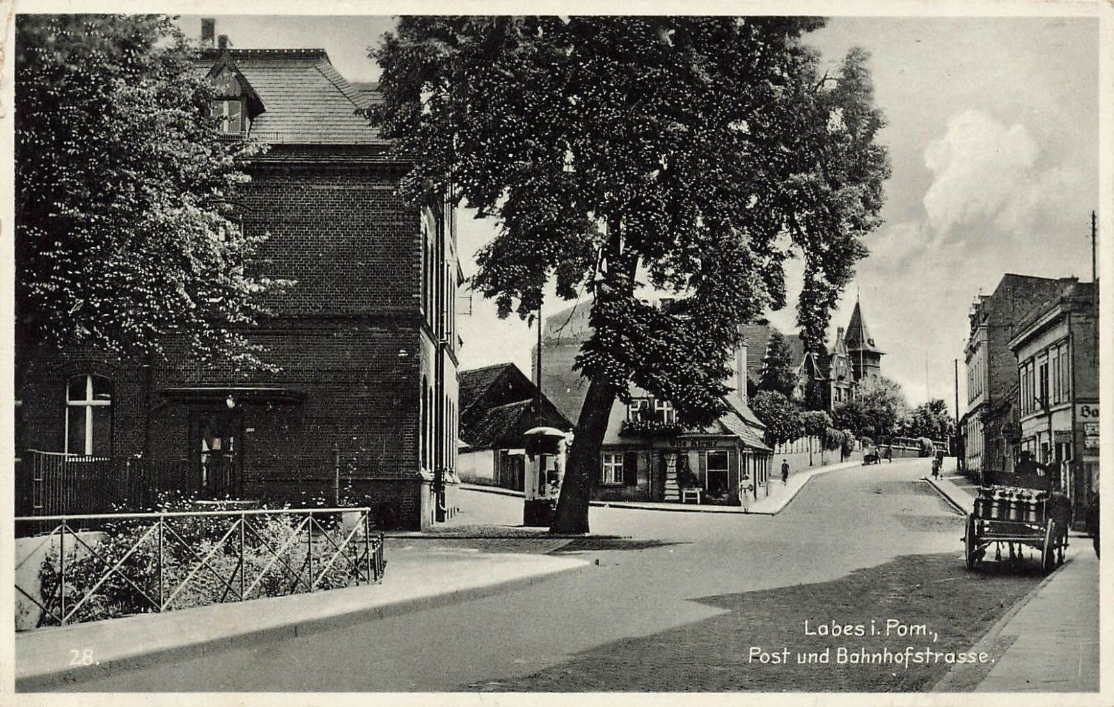 AK Labes Łobez Bahnhofstrasse Post Pommern 1937 gelaufen Postkarte