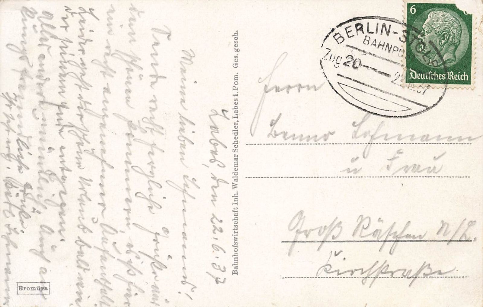 Rückseite: gelaufen 1937