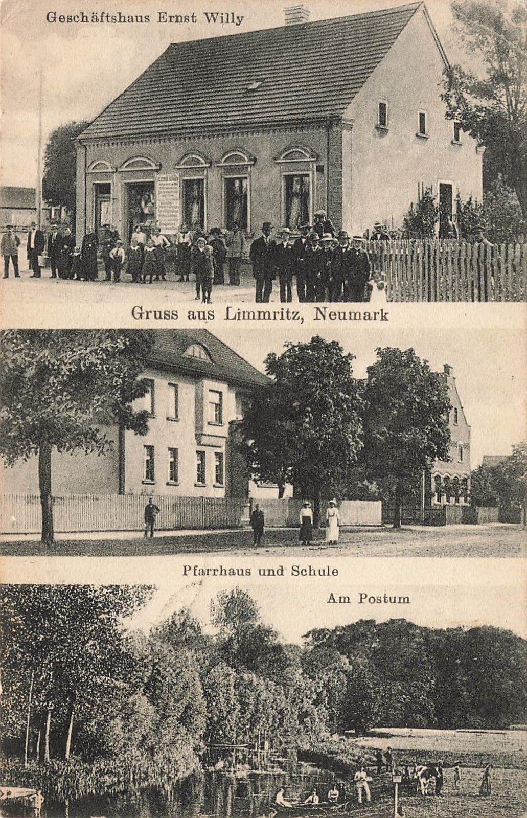 AK Limmritz Geschäftshaus Ernst Willy Pfarrhaus Schule Neumark Postkarte