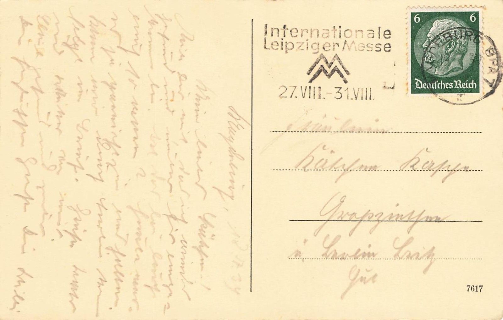 Rückseite: gelaufen 1939