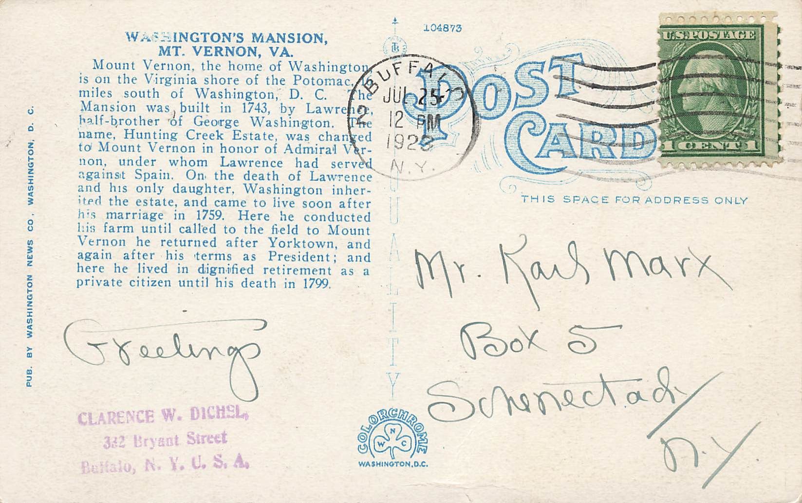 AK Mount Vernon Home of Washington USA Virginia 1923 gelaufen Postkarte