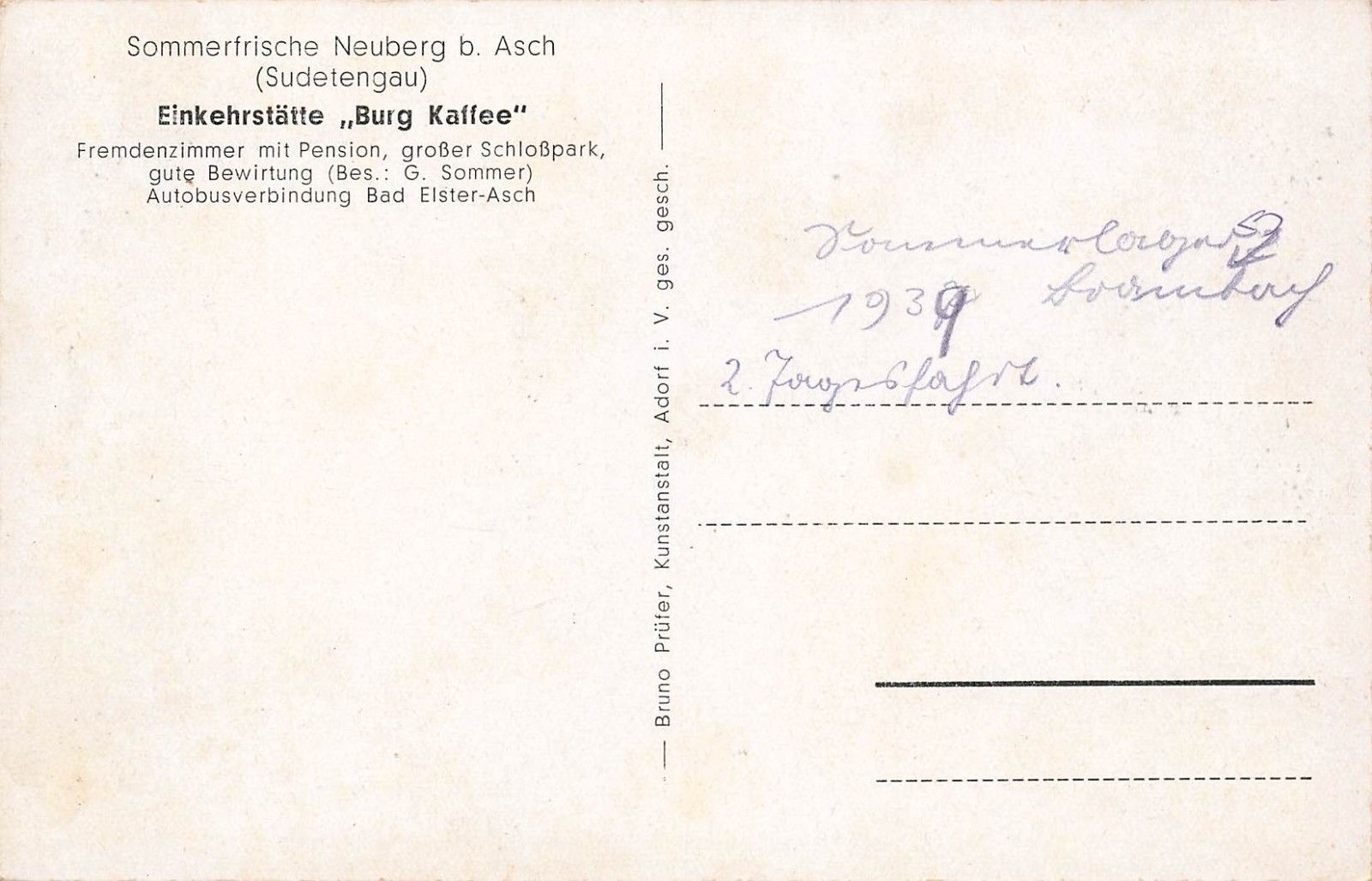 Rückseite: gelaufen 1940
