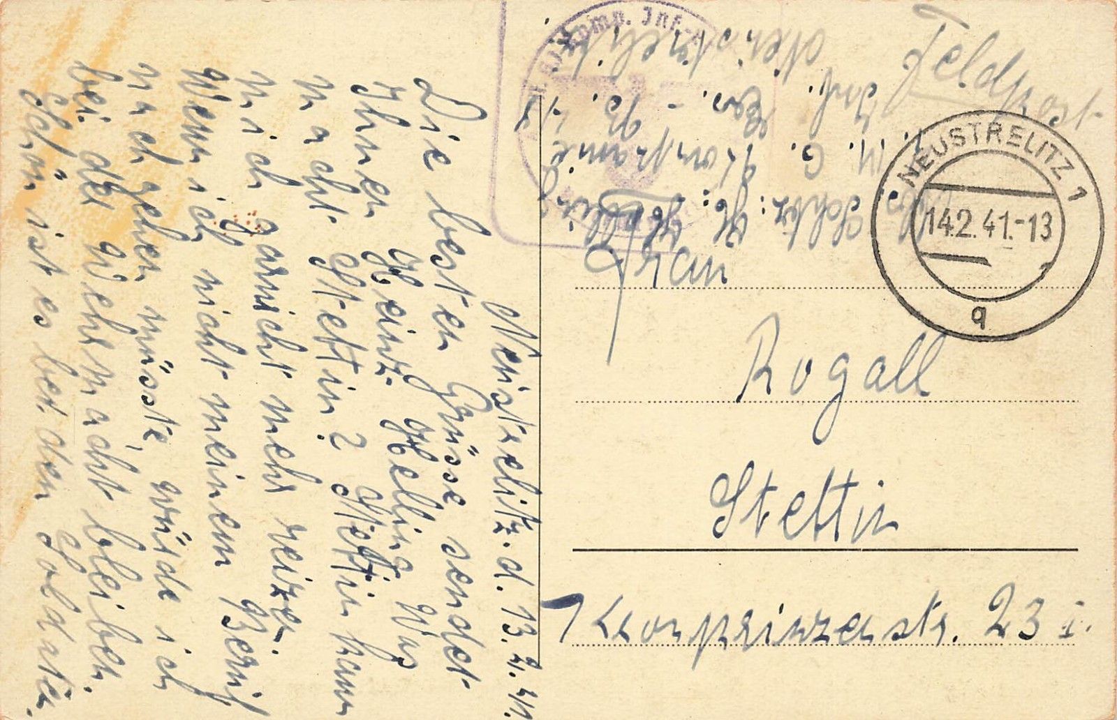 Rückseite: gelaufen 1941