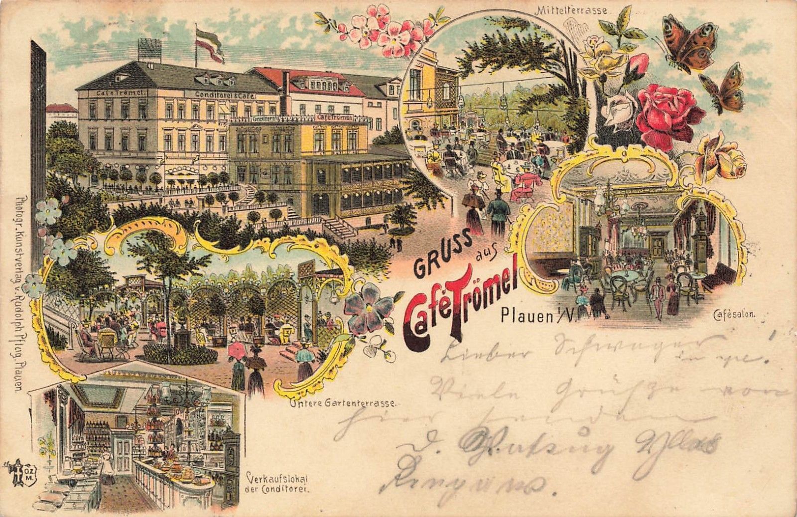 AK Plauen Conditorei Mittelterasse Sachsen Vogtland 1897 Postkarte Litho