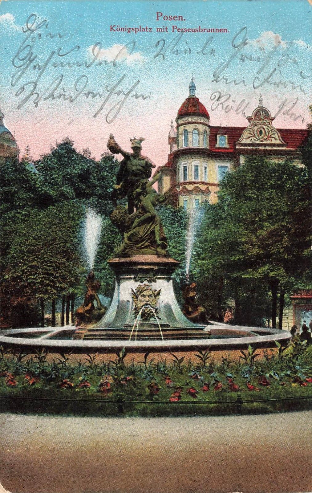AK Posen Königsplatz Perseusbrunnen Posen 1915 gelaufen Postkarte